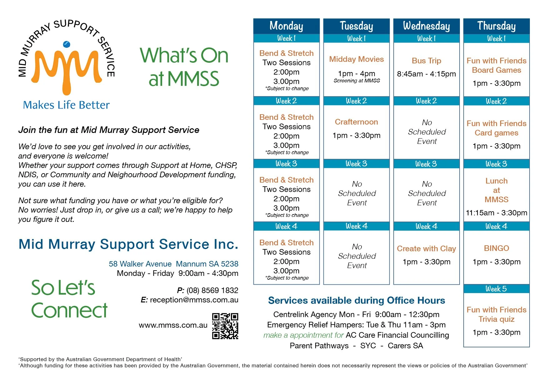 What’s On at MMSS